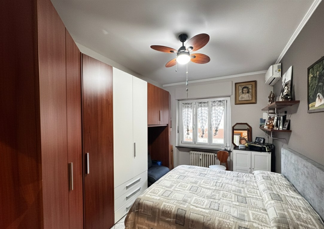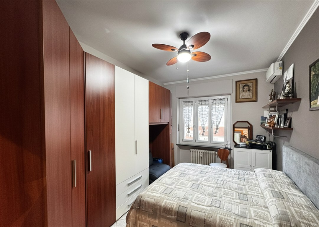 In zona ben servita, in una palazzina decorosa, al quarto piano senza ascensore, ottimo trilocale composto da: ingresso su zona giorno, due camere, antibagno e bagno e balconi.
