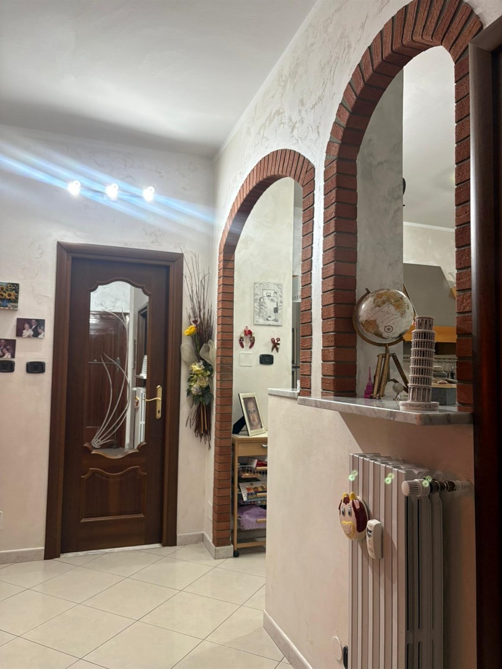 L'alloggio si presenta in ottime condizioni interne, gli infissi esterni sono con doppi vetri, porte interne in legno, pavimentazione in grès porcellanato lucido con colori chiari rende gli ambienti luminosi.